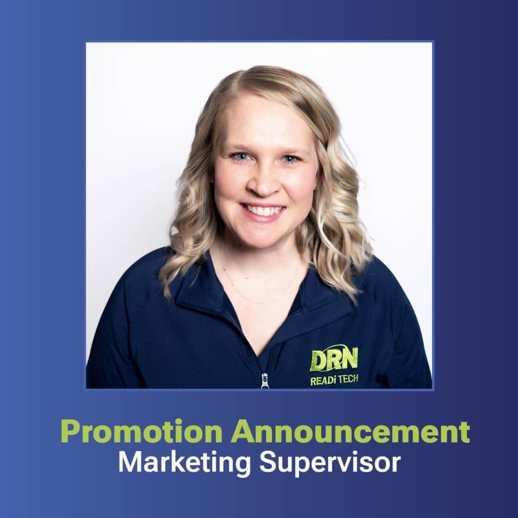 Memorable brands are creative and consistent, driven by reliable storytellers behind the scenes. DRN ReadiTech is excited to announce Michelle Schroeder’s promotion as Marketing Supervisor. Michelle is a talented marketer, that has exemplified three of our core values: reliability, teamwork, and giving back.